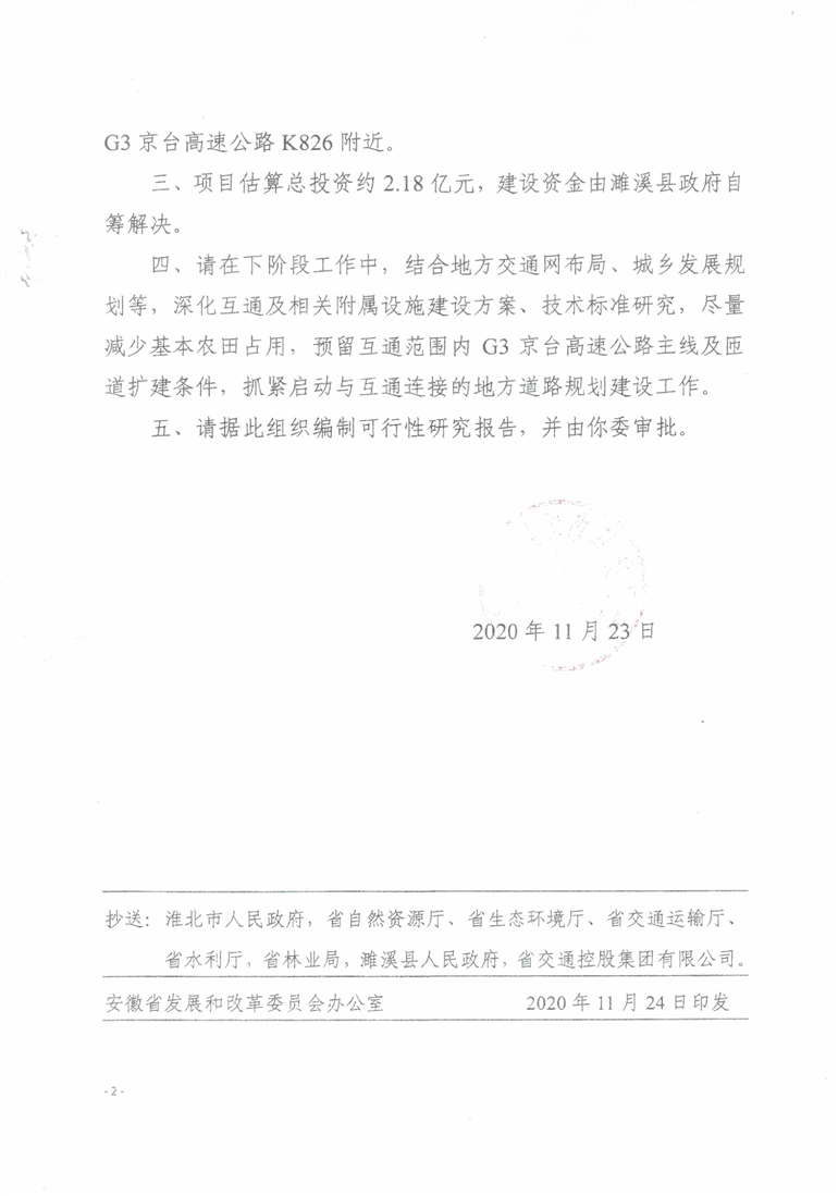 省发改委关于G3京台高速公路双堆集互通立交工程项目建议书的批复(1)